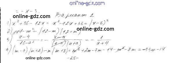 Готовые домашние задания по Алгебре за 9 класс Дидактические материалы Евстафьева, Карп 2017 - П-25. Тождественные выражения Проверочные работы Вариант 2