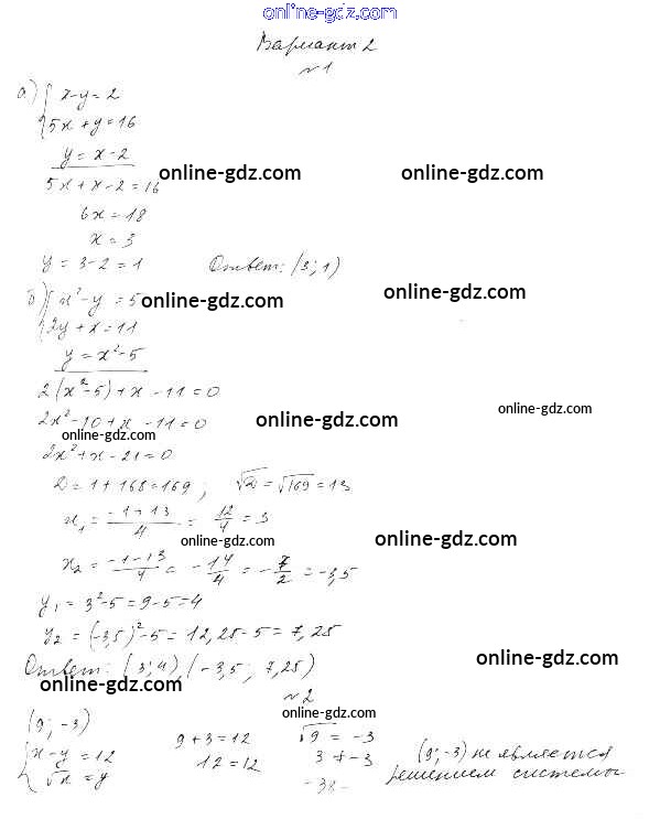 Готовые домашние задания по Алгебре за 9 класс Дидактические материалы Евстафьева, Карп 2017 - П-34. Системы уравнений с двумя переменными Проверочные работы Вариант 2