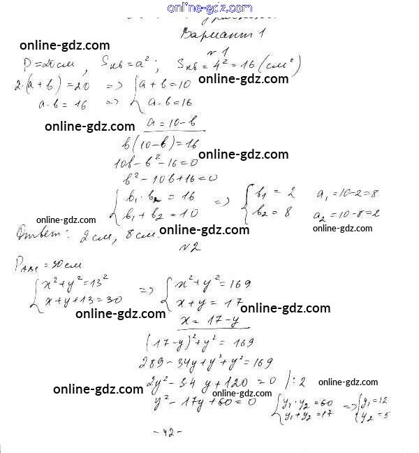 Готовые домашние задания по Алгебре за 9 класс Дидактические материалы Евстафьева, Карп 2017 - П-37. Решение задач с помощью систем уравнений Проверочные работы Вариант 1