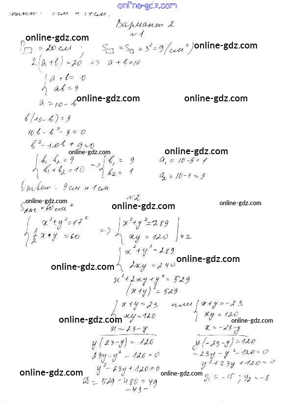 Готовые домашние задания по Алгебре за 9 класс Дидактические материалы Евстафьева, Карп 2017 - П-37. Решение задач с помощью систем уравнений Проверочные работы Вариант 2