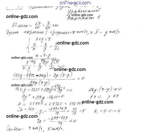 Готовые домашние задания по Алгебре за 9 класс Дидактические материалы Евстафьева, Карп 2017 - П-38. Решение задач с помощью систем уравнений Проверочные работы Вариант 1