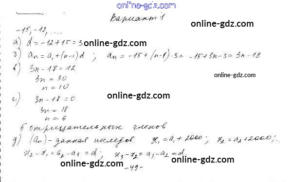 Готовые домашние задания по Алгебре за 9 класс Дидактические материалы Евстафьева, Карп 2017 - П-43. Арифметическая прогрессия Проверочные работы Вариант 1