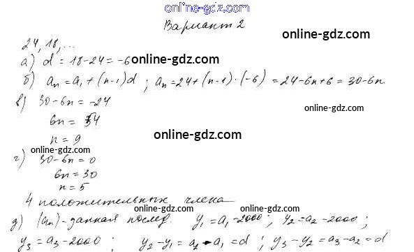 Готовые домашние задания по Алгебре за 9 класс Дидактические материалы Евстафьева, Карп 2017 - П-43. Арифметическая прогрессия Проверочные работы Вариант 2