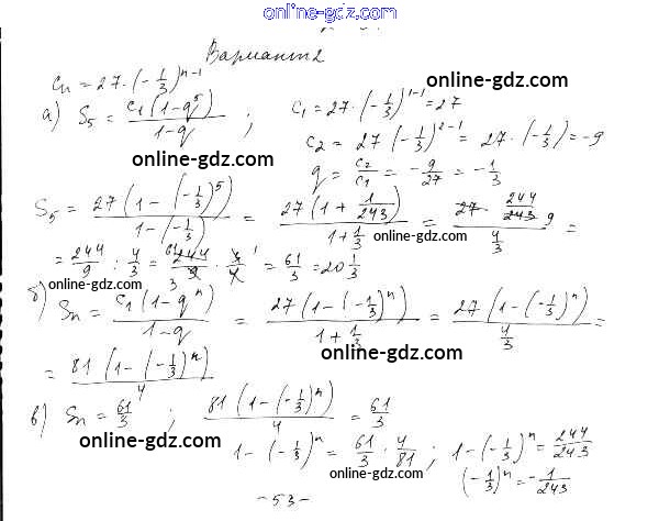 Готовые домашние задания по Алгебре за 9 класс Дидактические материалы Евстафьева, Карп 2017 - П-46. Сумма первых п членов геометрической прогрессии Проверочные работы Вариант 2