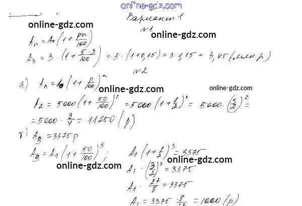Готовые домашние задания по Алгебре за 9 класс Дидактические материалы Евстафьева, Карп 2017 - П-47. Простые и сложные проценты Проверочные работы Вариант 1