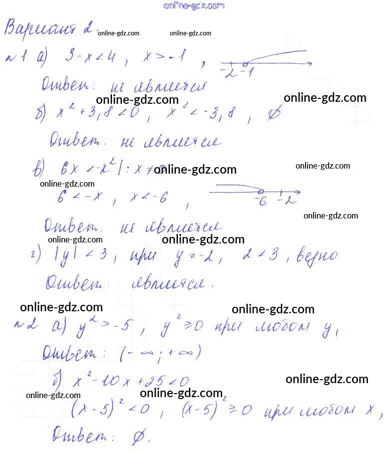 Готовые домашние задания по Алгебре за 9 класс Дидактические материалы Евстафьева, Карп 2017 - П-7. Решение линейных неравенств Проверочные работы Вариант 2
