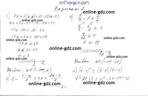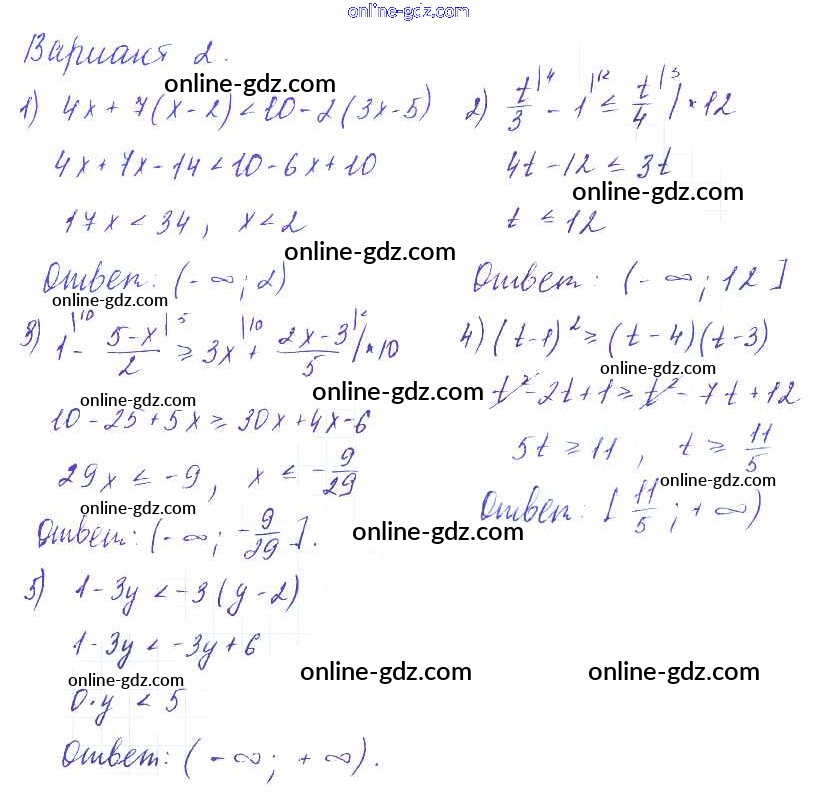 Готовые домашние задания по Алгебре за 9 класс Дидактические материалы Евстафьева, Карп 2017 - П-9. Решение линейных неравенств Проверочные работы Вариант 2