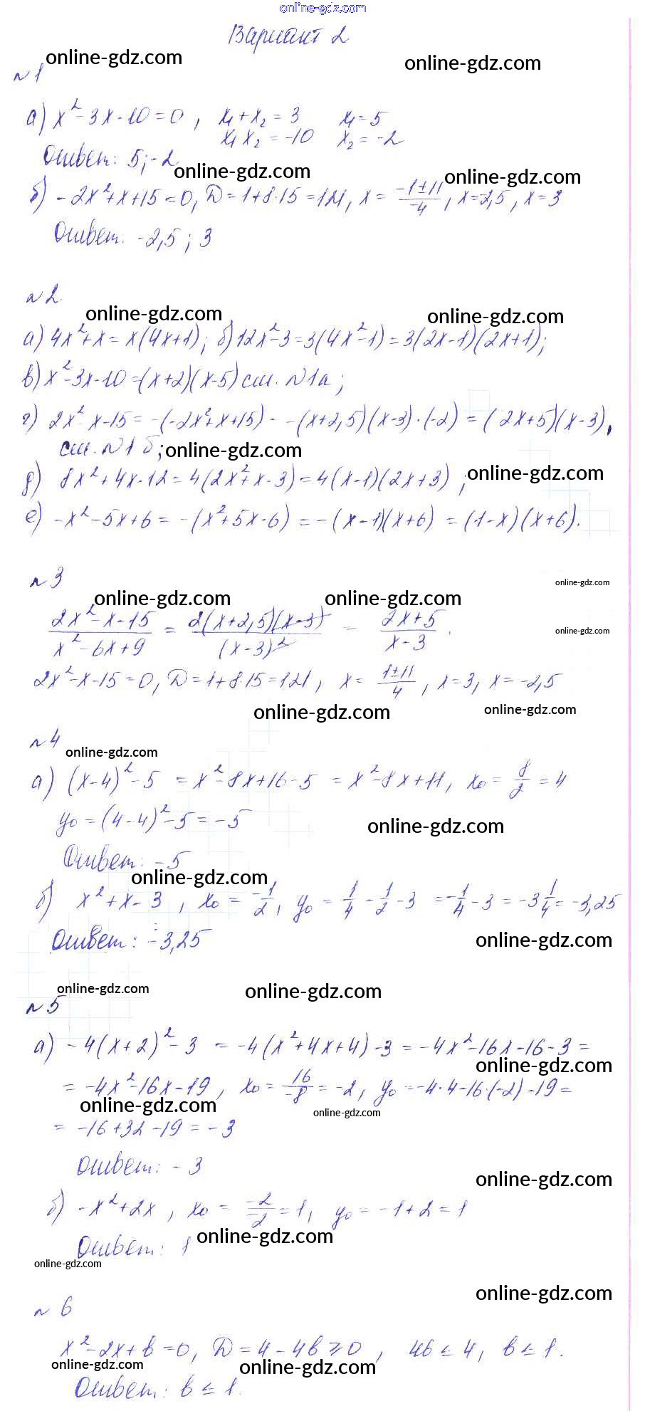 Готовые домашние задания по Алгебре за 9 класс Дидактические материалы Звавич, Дьяконова УМК 2017 - КР-1 Контрольные работы вариант 2