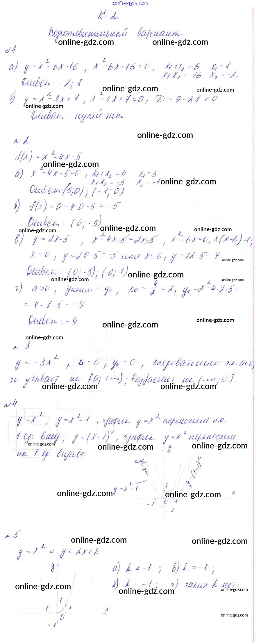 Готовые домашние задания по Алгебре за 9 класс Дидактические материалы Звавич, Дьяконова УМК 2017 - КР-2 Контрольные работы подготовительный вариант
