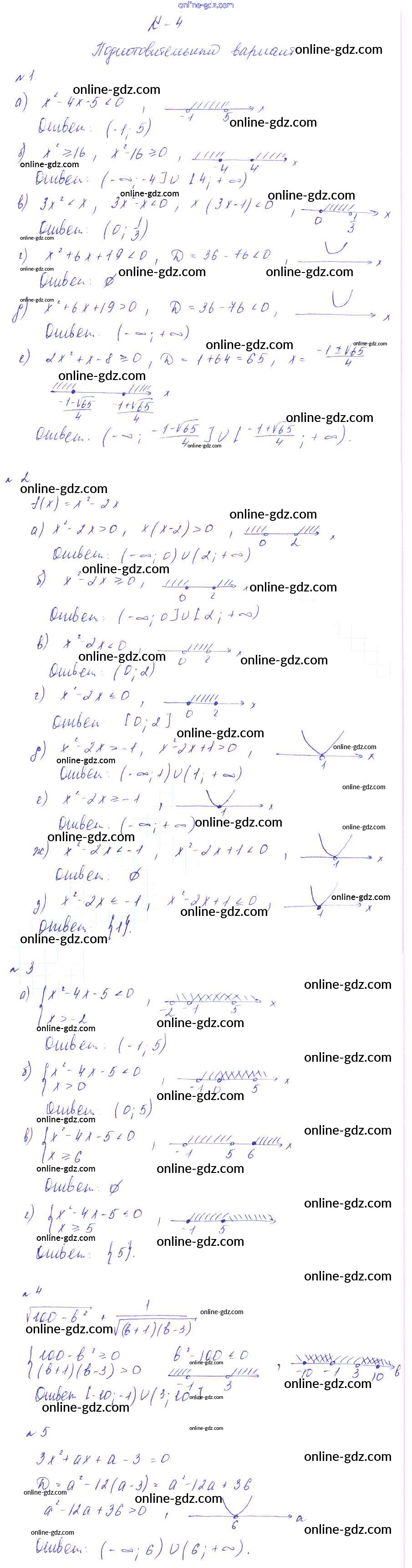 Готовые домашние задания по Алгебре за 9 класс Дидактические материалы Звавич, Дьяконова УМК 2017 - КР-4 Контрольные работы подготовительный вариант