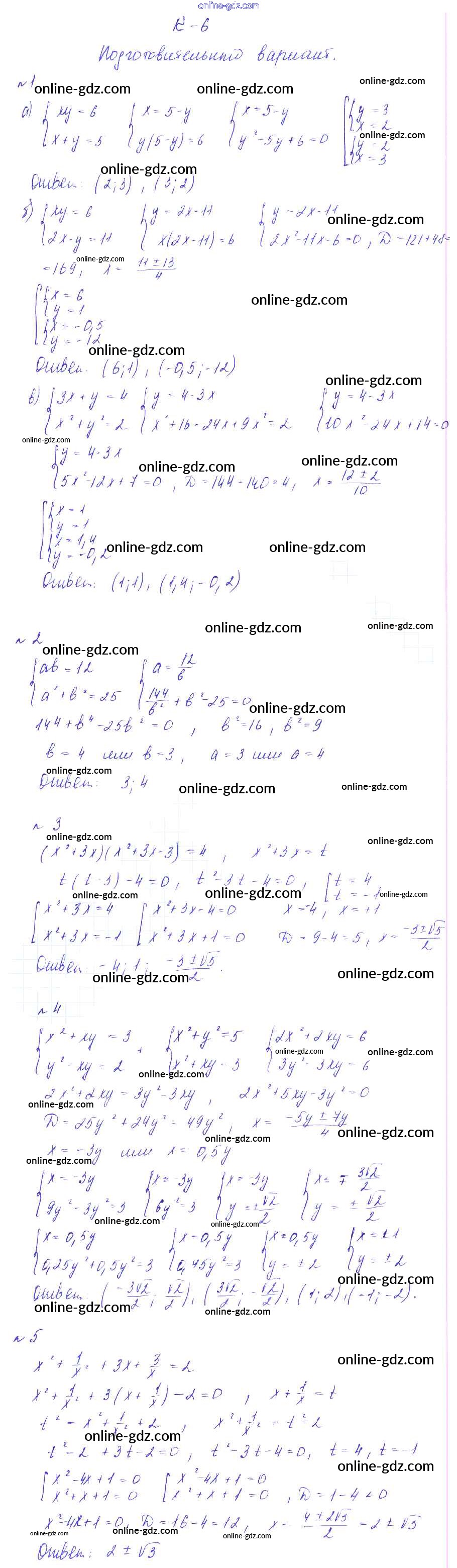 Готовые домашние задания по Алгебре за 9 класс Дидактические материалы Звавич, Дьяконова УМК 2017 - КР-6 Контрольные работы подготовительный вариант