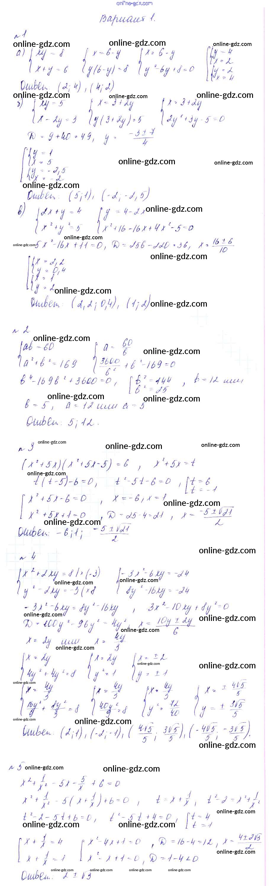 Готовые домашние задания по Алгебре за 9 класс Дидактические материалы Звавич, Дьяконова УМК 2017 - КР-6 Контрольные работы вариант 1