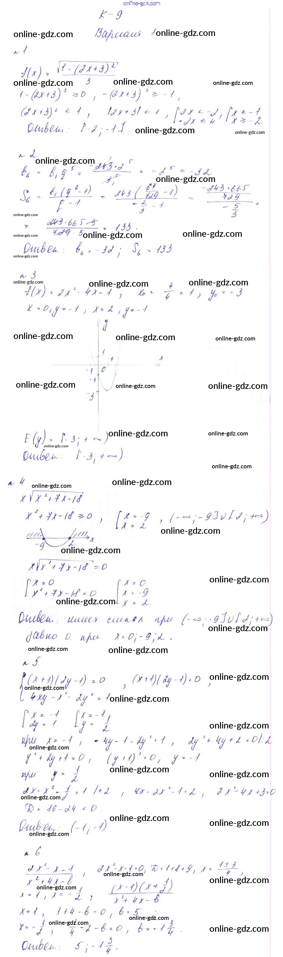 Готовые домашние задания по Алгебре за 9 класс Дидактические материалы Звавич, Дьяконова УМК 2017 - КР-9 Контрольные работы вариант 1