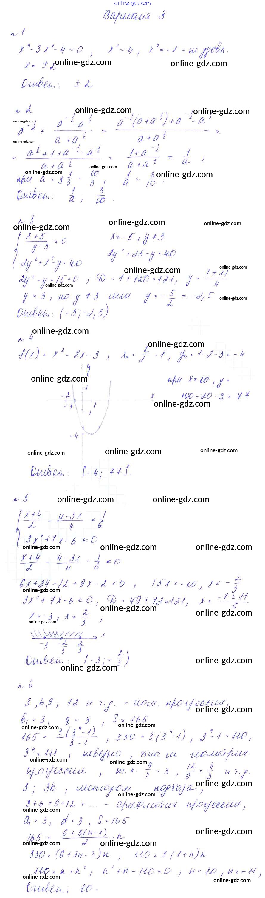 Готовые домашние задания по Алгебре за 9 класс Дидактические материалы Звавич, Дьяконова УМК 2017 - КР-9 Контрольные работы вариант 3