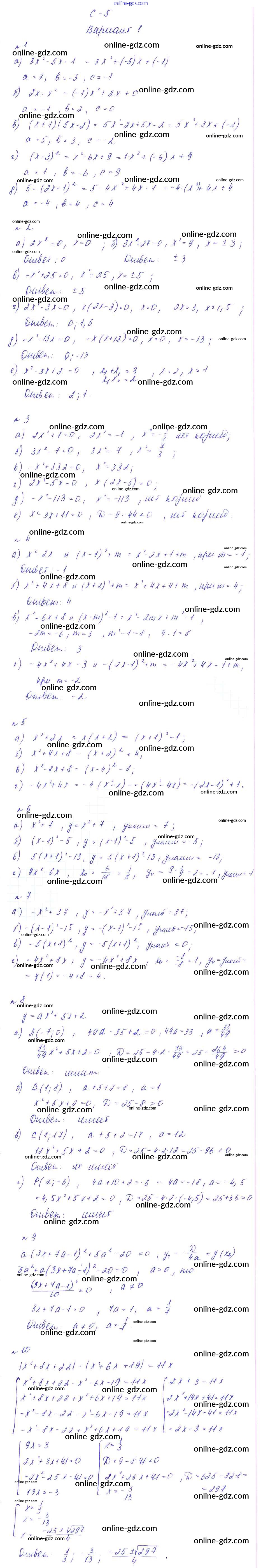 Готовые домашние задания по Алгебре за 9 класс Дидактические материалы Звавич, Дьяконова УМК 2017 - СР-5 Самостоятельные работы вариант 1
