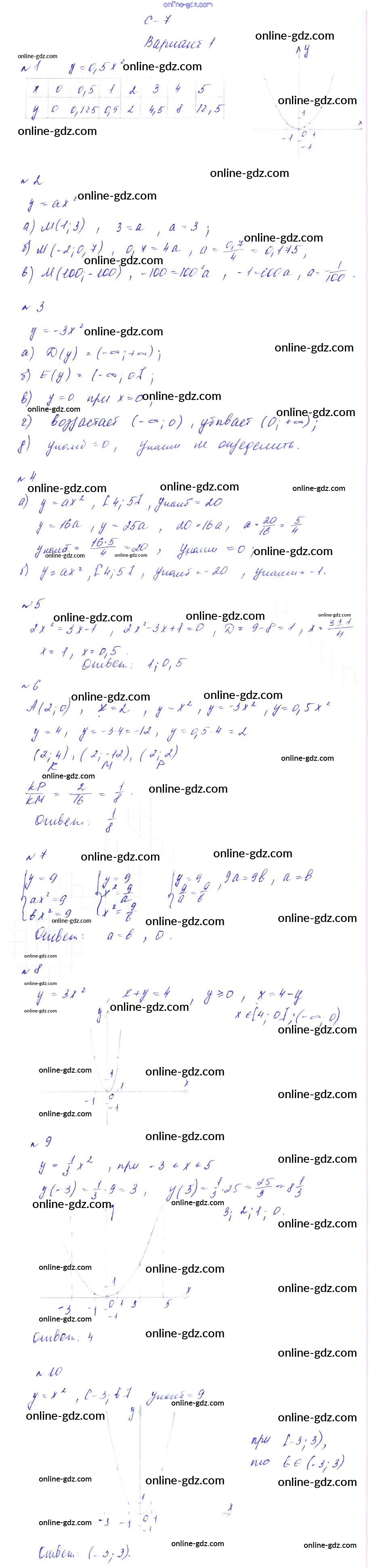 Готовые домашние задания по Алгебре за 9 класс Дидактические материалы Звавич, Дьяконова УМК 2017 - СР-7 Самостоятельные работы вариант 1