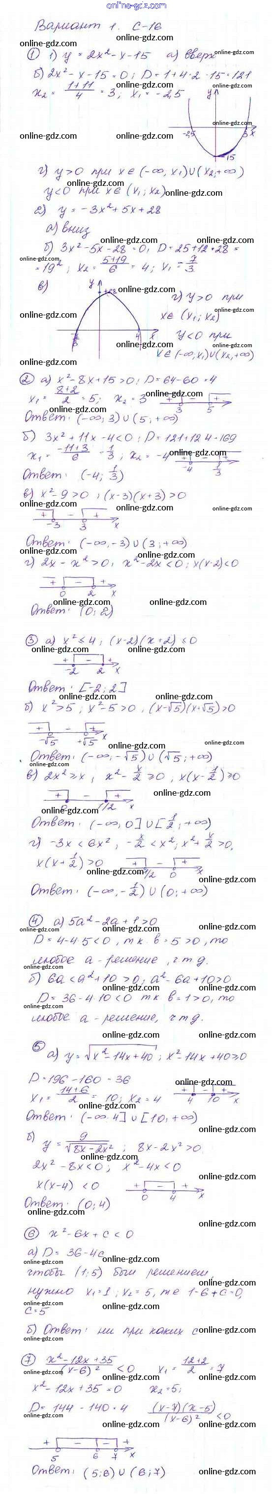 Готовые домашние задания по Алгебре за 9 класс Дидактические материалы Макарычев, Миндюк 2015 - Вариант 1 Самостоятельные работы C-16