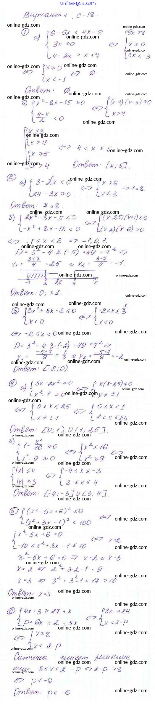 Готовые домашние задания по Алгебре за 9 класс Дидактические материалы Макарычев, Миндюк 2015 - Вариант 1 Самостоятельные работы C-18