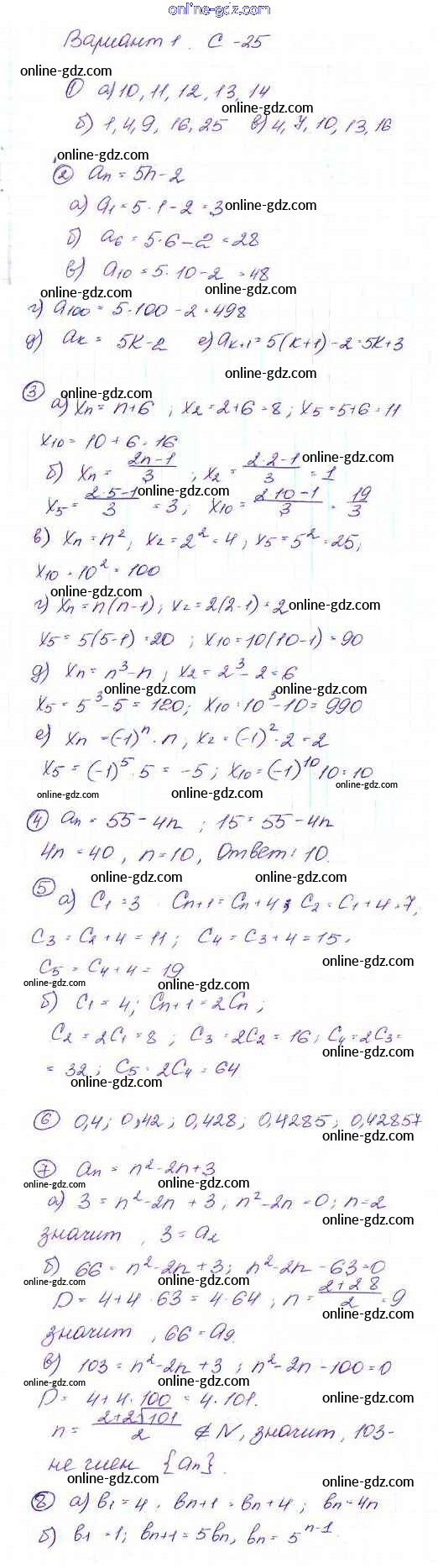 Готовые домашние задания по Алгебре за 9 класс Дидактические материалы Макарычев, Миндюк 2015 - Вариант 1 Самостоятельные работы C-25