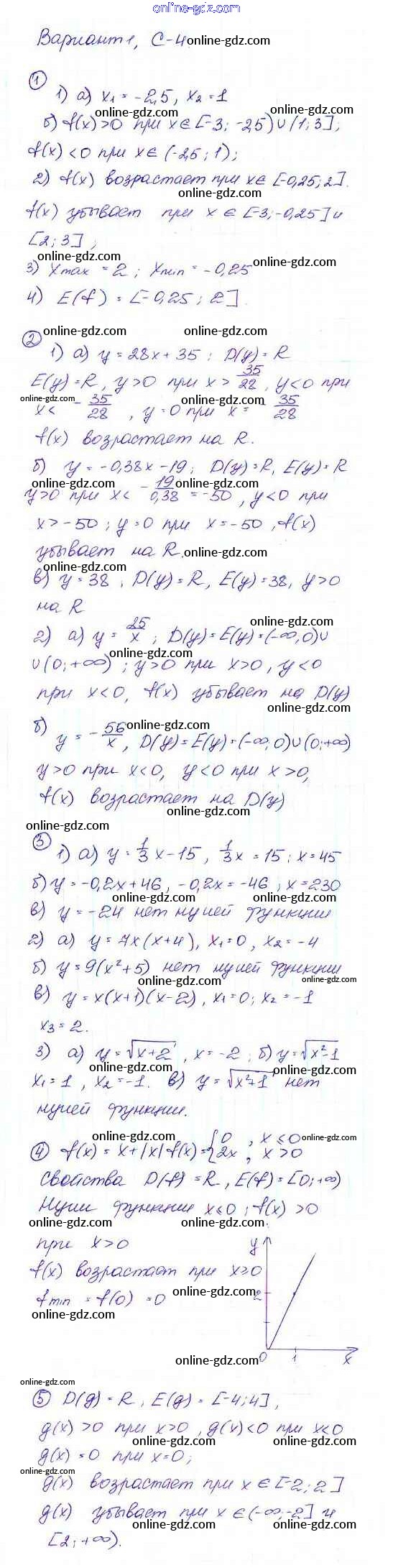 Готовые домашние задания по Алгебре за 9 класс Дидактические материалы Макарычев, Миндюк 2015 - Вариант 1 Самостоятельные работы C-4