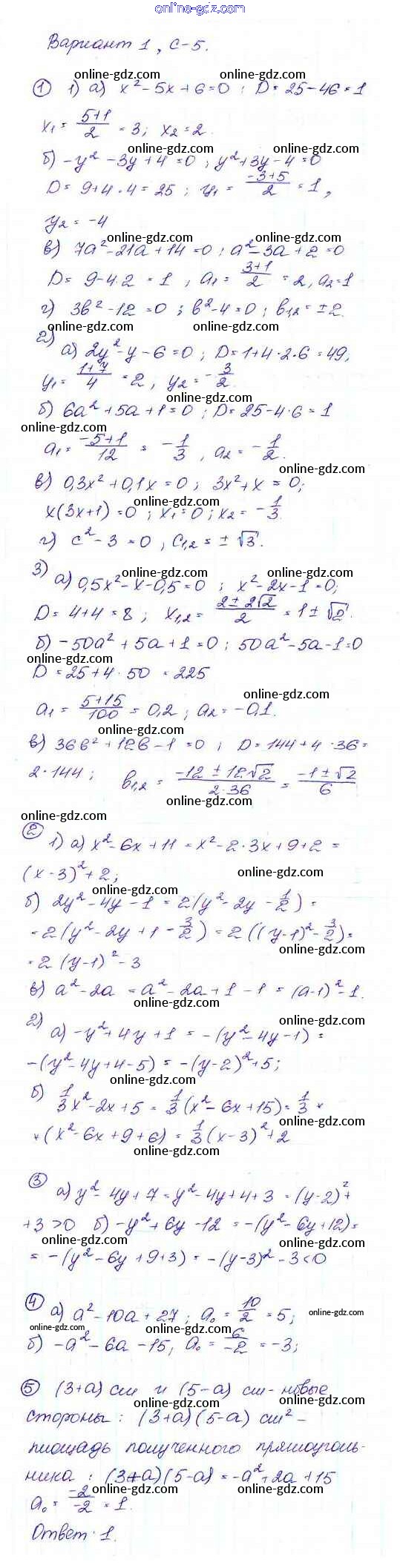 Готовые домашние задания по Алгебре за 9 класс Дидактические материалы Макарычев, Миндюк 2015 - Вариант 1 Самостоятельные работы C-5