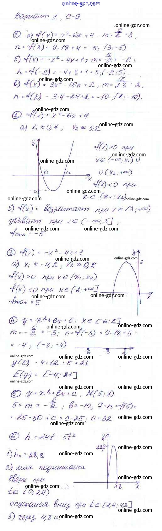 Готовые домашние задания по Алгебре за 9 класс Дидактические материалы Макарычев, Миндюк 2015 - Вариант 1 Самостоятельные работы C-9