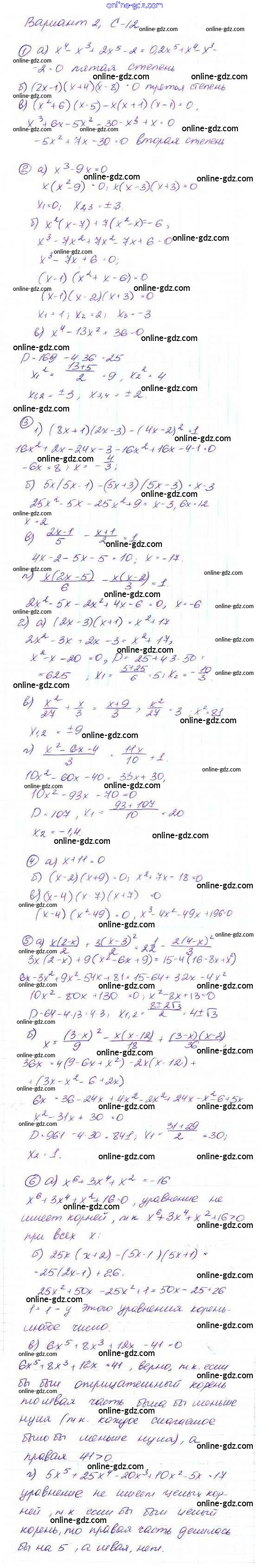 Готовые домашние задания по Алгебре за 9 класс Дидактические материалы Макарычев, Миндюк 2015 - Вариант 2 Самостоятельные работы С-12