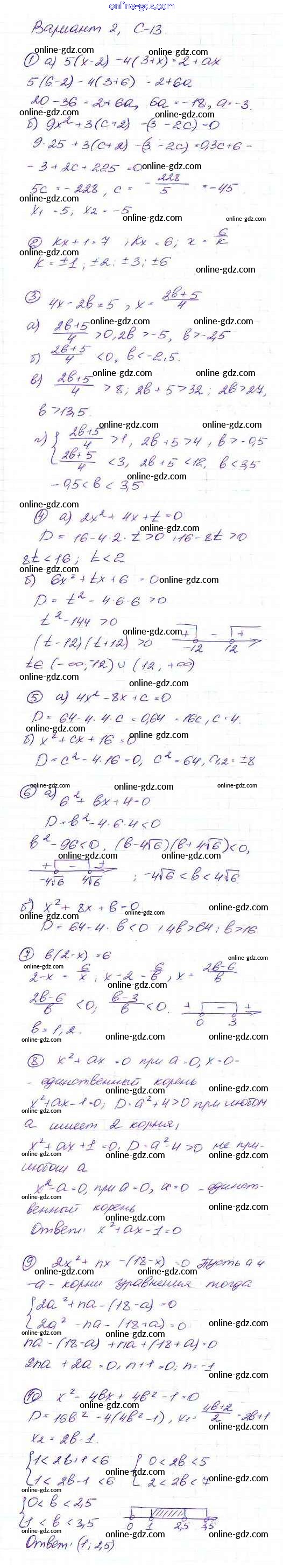 Готовые домашние задания по Алгебре за 9 класс Дидактические материалы Макарычев, Миндюк 2015 - Вариант 2 Самостоятельные работы С-13