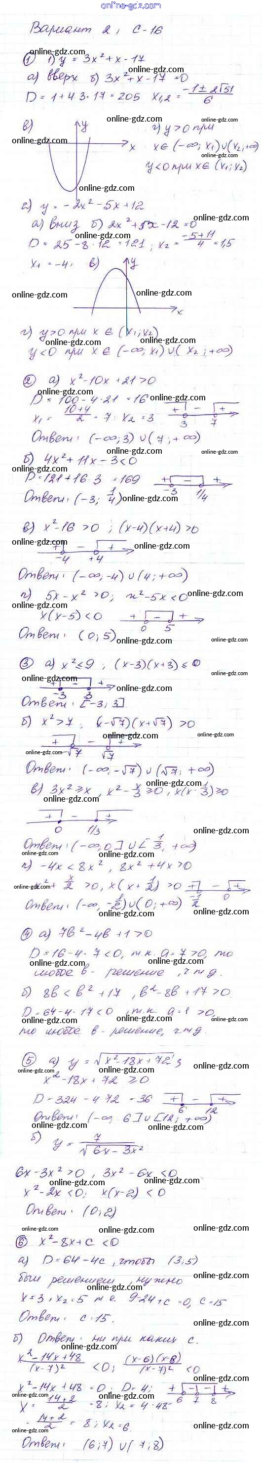 Готовые домашние задания по Алгебре за 9 класс Дидактические материалы Макарычев, Миндюк 2015 - Вариант 2 Самостоятельные работы С-16