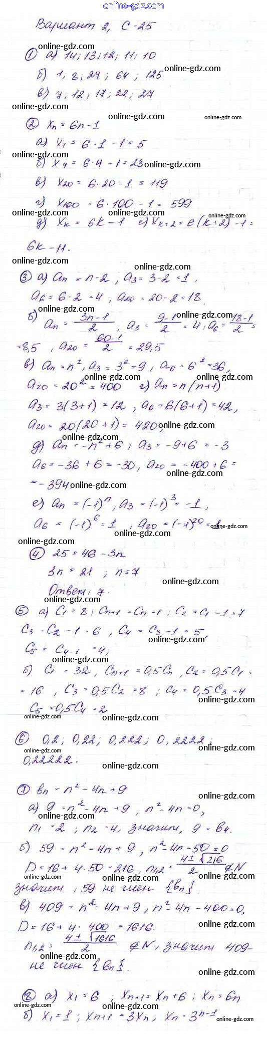 Готовые домашние задания по Алгебре за 9 класс Дидактические материалы Макарычев, Миндюк 2015 - Вариант 2 Самостоятельные работы С-25