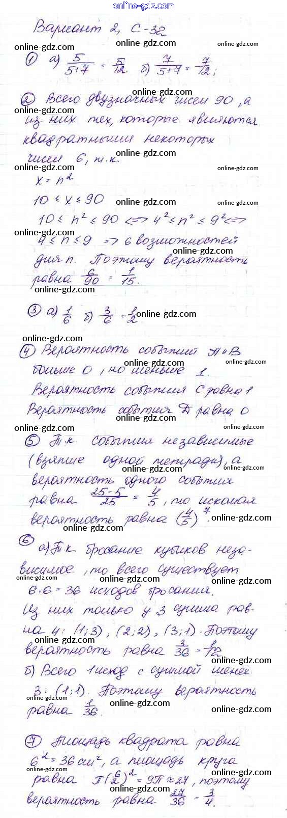 Готовые домашние задания по Алгебре за 9 класс Дидактические материалы Макарычев, Миндюк 2015 - Вариант 2 Самостоятельные работы С-32