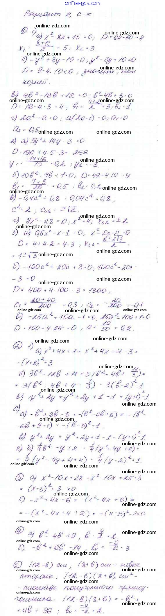Готовые домашние задания по Алгебре за 9 класс Дидактические материалы Макарычев, Миндюк 2015 - Вариант 2 Самостоятельные работы С-5
