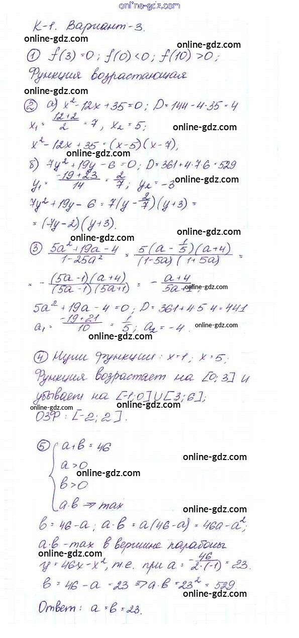 Готовые домашние задания по Алгебре за 9 класс Дидактические материалы Макарычев, Миндюк 2015 - КР-1 Контрольные работы Вариант 3