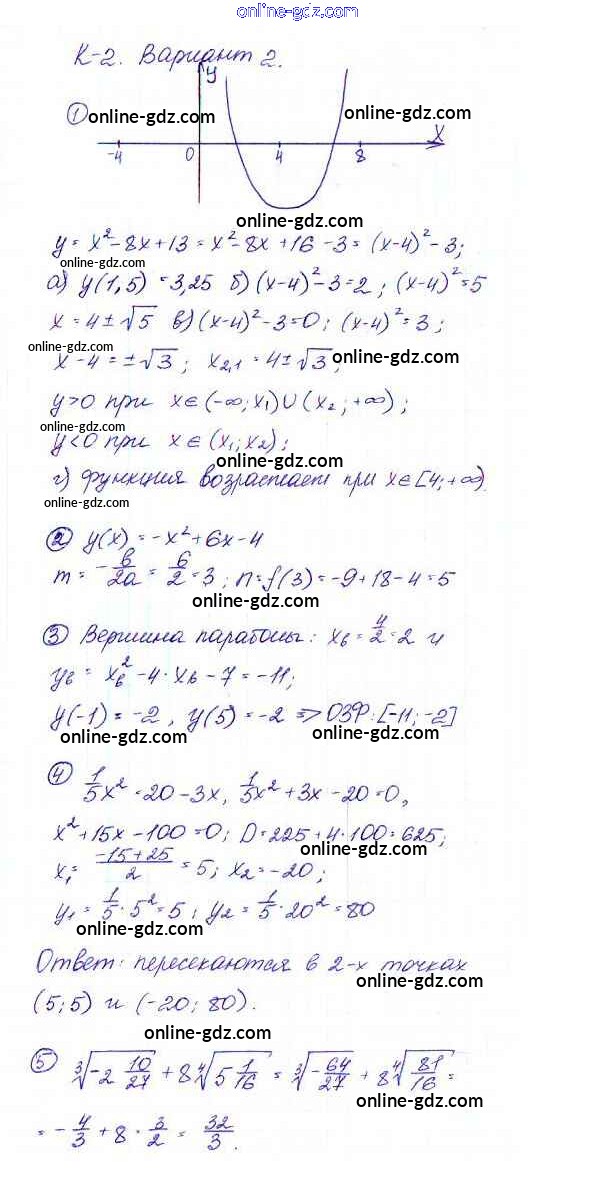 Готовые домашние задания по Алгебре за 9 класс Дидактические материалы Макарычев, Миндюк 2015 - КР-2 Контрольные работы Вариант 2