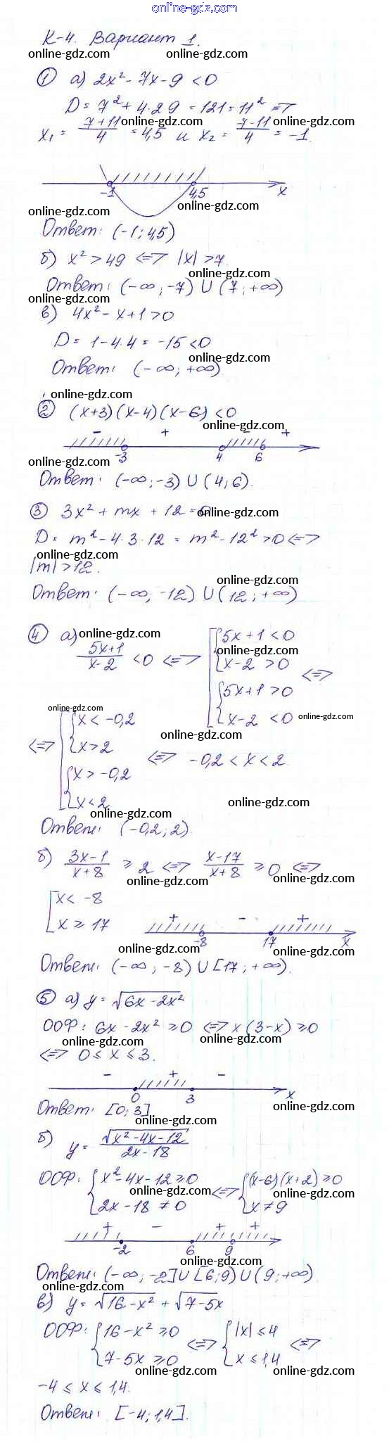 Готовые домашние задания по Алгебре за 9 класс Дидактические материалы Макарычев, Миндюк 2015 - КР-4 Контрольные работы Вариант 1