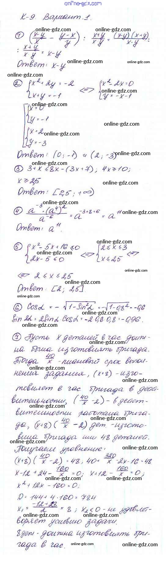 Готовые домашние задания по Алгебре за 9 класс Дидактические материалы Макарычев, Миндюк 2015 - КР-9 Контрольные работы Вариант 1