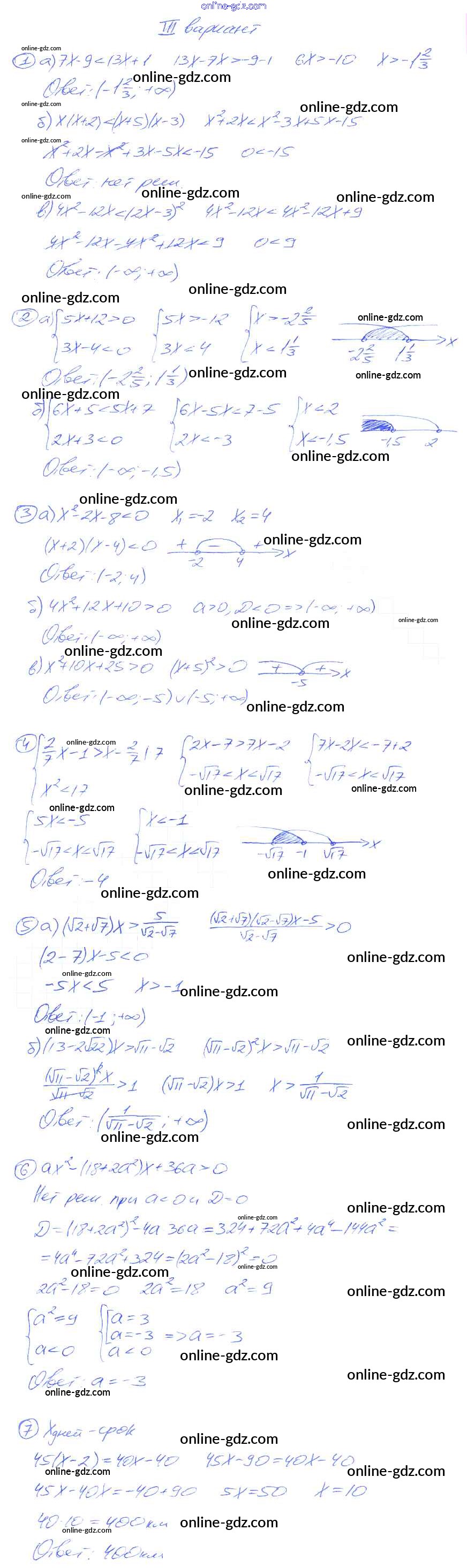 Готовые домашние задания по Алгебре за 9 класс Дидактические материалы Потапов, Шевкин МГУ - школе 2010 - КР №1 Контрольные работы вариант 3