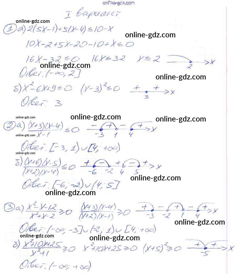 Готовые домашние задания по Алгебре за 9 класс Дидактические материалы Потапов, Шевкин МГУ - школе 2010 - СР №10. Нестрогие неравенства Самостоятельные работы вариант 1