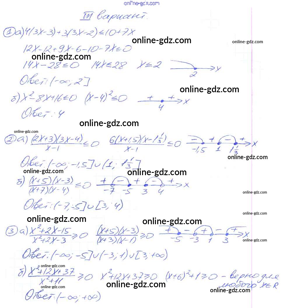 Готовые домашние задания по Алгебре за 9 класс Дидактические материалы Потапов, Шевкин МГУ - школе 2010 - СР №10. Нестрогие неравенства Самостоятельные работы вариант 3