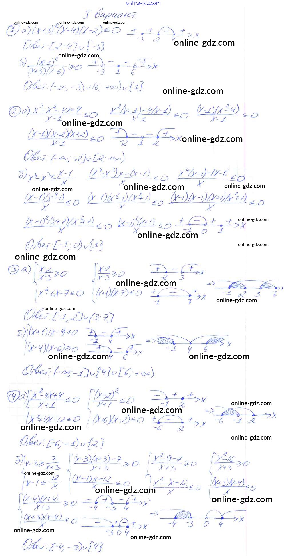 Готовые домашние задания по Алгебре за 9 класс Дидактические материалы Потапов, Шевкин МГУ - школе 2010 - СР №11. Нестрогие неравенства Самостоятельные работы вариант 1