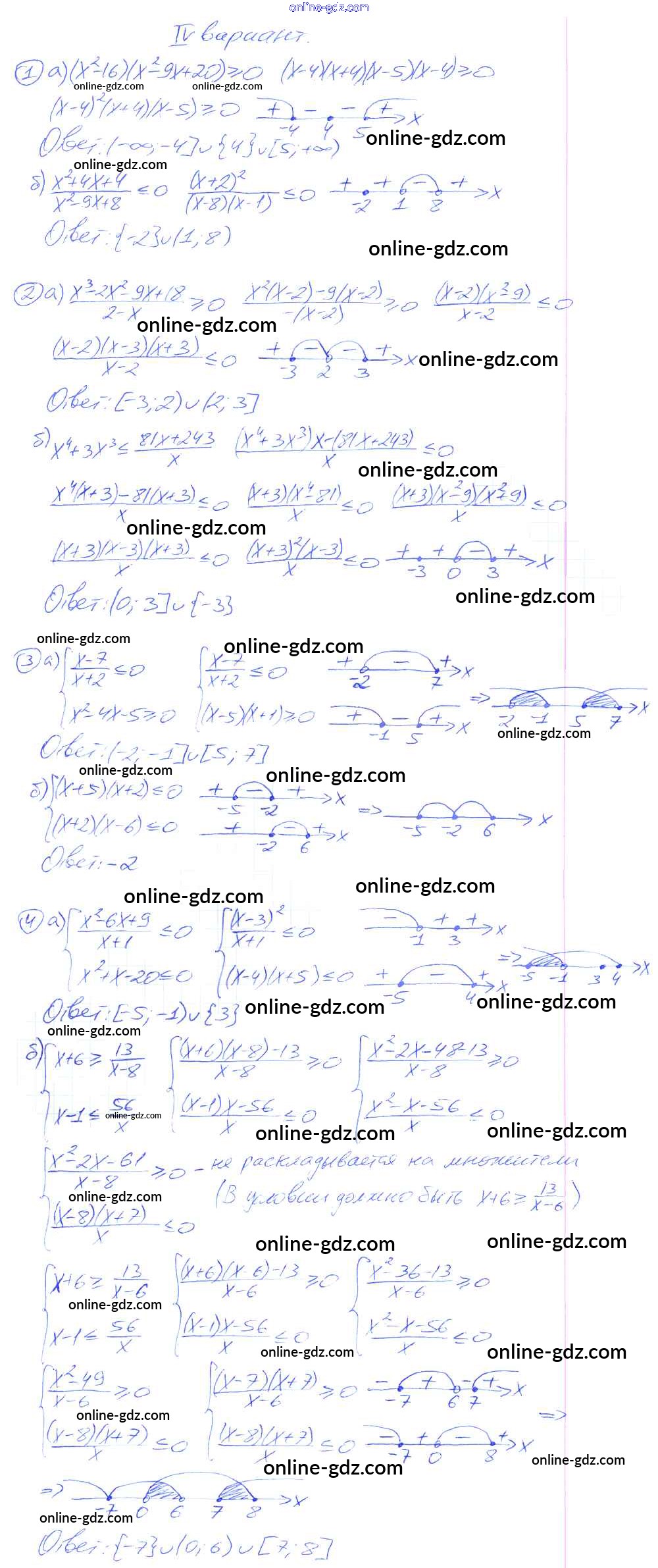 Готовые домашние задания по Алгебре за 9 класс Дидактические материалы Потапов, Шевкин МГУ - школе 2010 - СР №11. Нестрогие неравенства Самостоятельные работы вариант 4