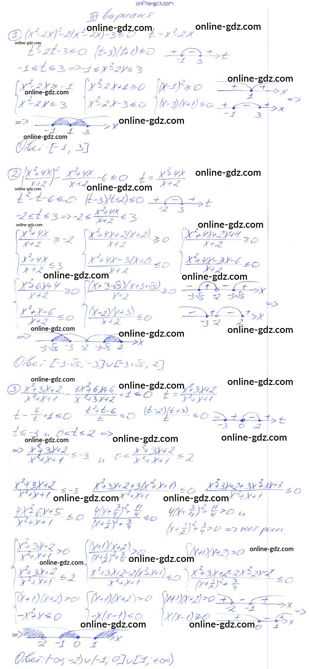 Готовые домашние задания по Алгебре за 9 класс Дидактические материалы Потапов, Шевкин МГУ - школе 2010 - СР №12. Замена неизвестного при решении рациональных неравенств Самостоятельные работы вариант 3