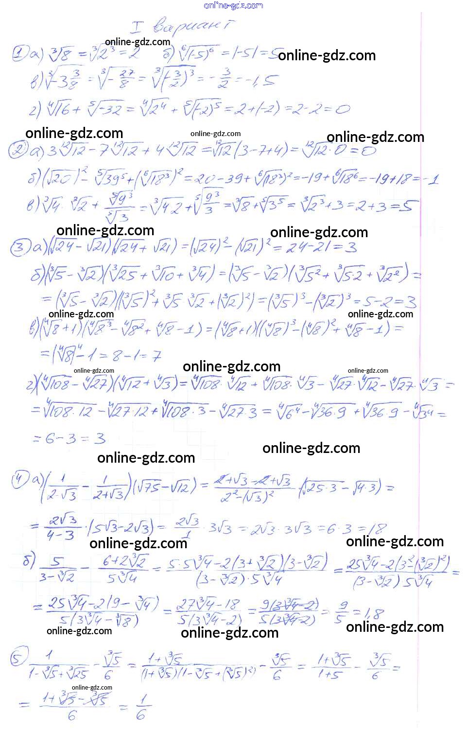 Готовые домашние задания по Алгебре за 9 класс Дидактические материалы Потапов, Шевкин МГУ - школе 2010 - СР №14. Корень степени n Самостоятельные работы вариант 1