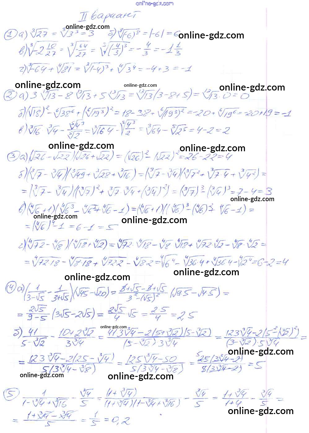 Готовые домашние задания по Алгебре за 9 класс Дидактические материалы Потапов, Шевкин МГУ - школе 2010 - СР №14. Корень степени n Самостоятельные работы вариант 2
