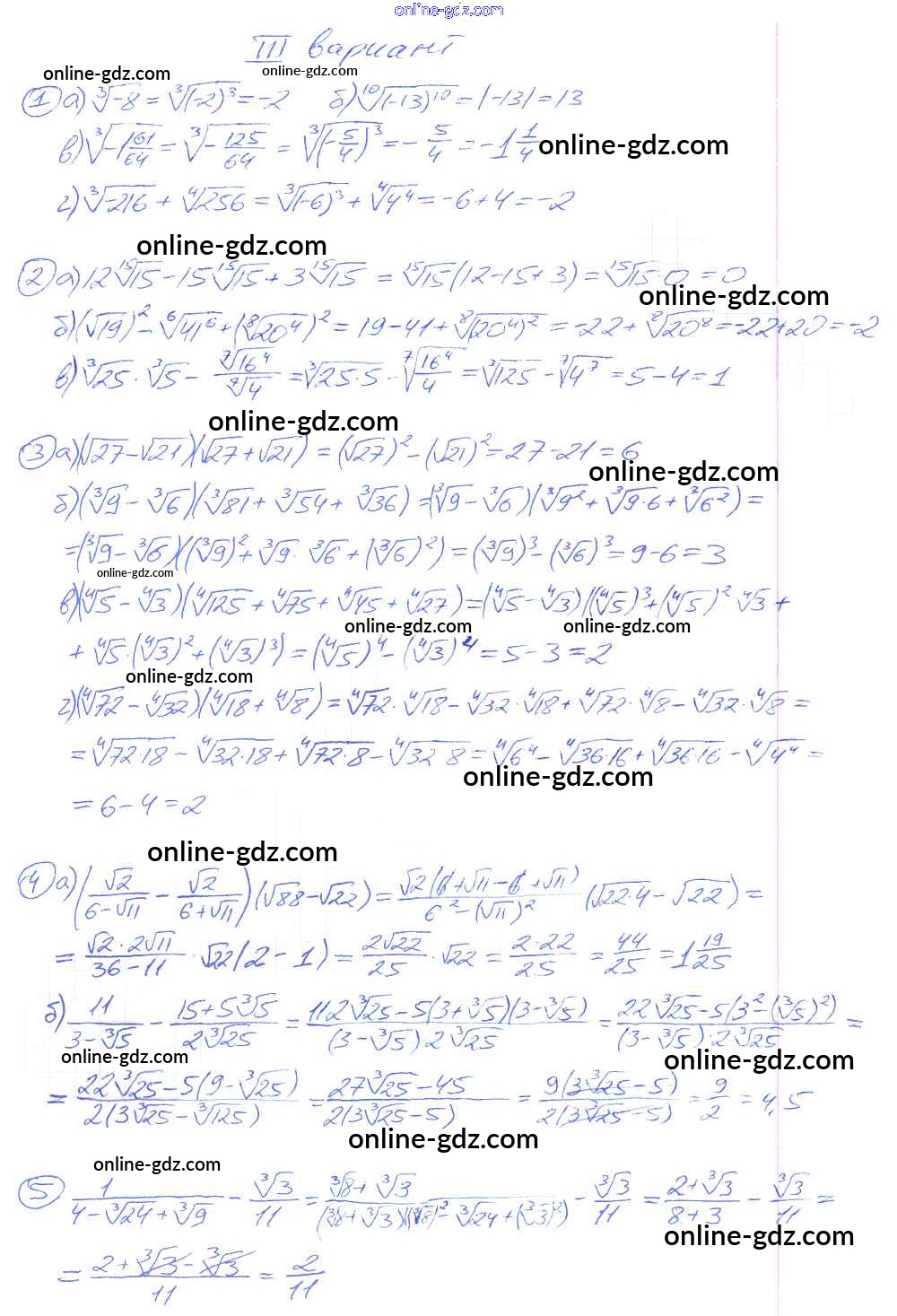 Готовые домашние задания по Алгебре за 9 класс Дидактические материалы Потапов, Шевкин МГУ - школе 2010 - СР №14. Корень степени n Самостоятельные работы вариант 3