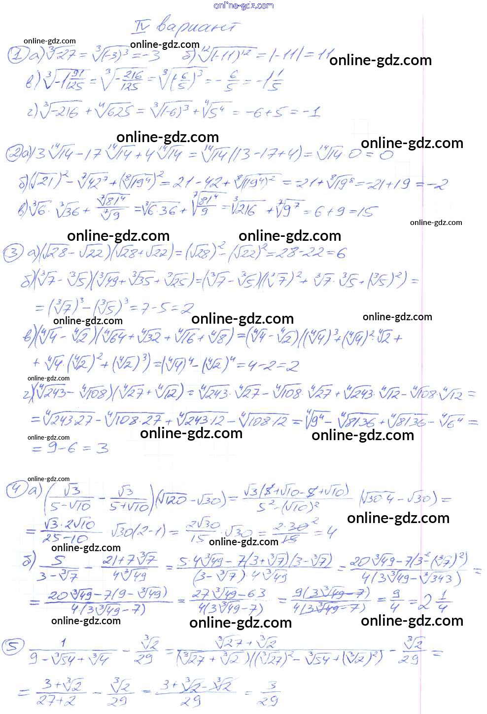 Готовые домашние задания по Алгебре за 9 класс Дидактические материалы Потапов, Шевкин МГУ - школе 2010 - СР №14. Корень степени n Самостоятельные работы вариант 4