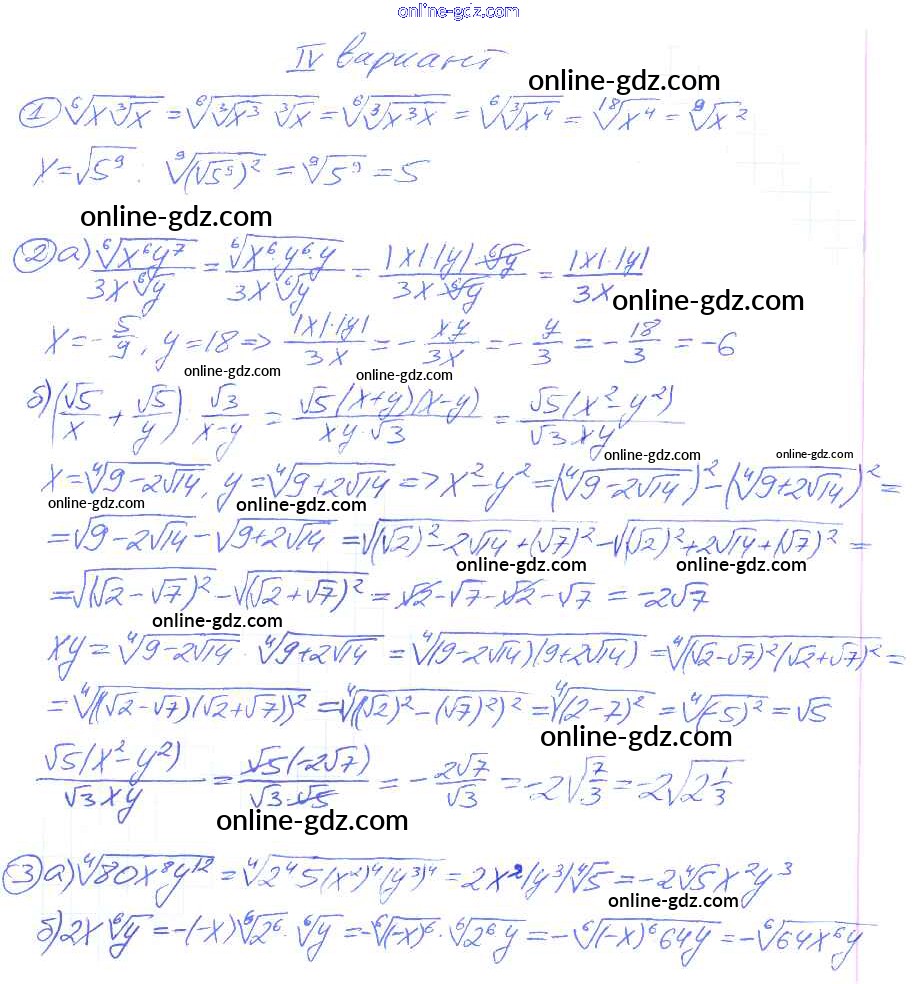Готовые домашние задания по Алгебре за 9 класс Дидактические материалы Потапов, Шевкин МГУ - школе 2010 - СР №15. Корень степени n Самостоятельные работы вариант 4