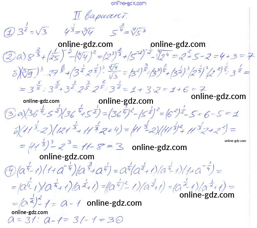 Готовые домашние задания по Алгебре за 9 класс Дидактические материалы Потапов, Шевкин МГУ - школе 2010 - СР №16. Степень с рациональным показателем Самостоятельные работы вариант 2