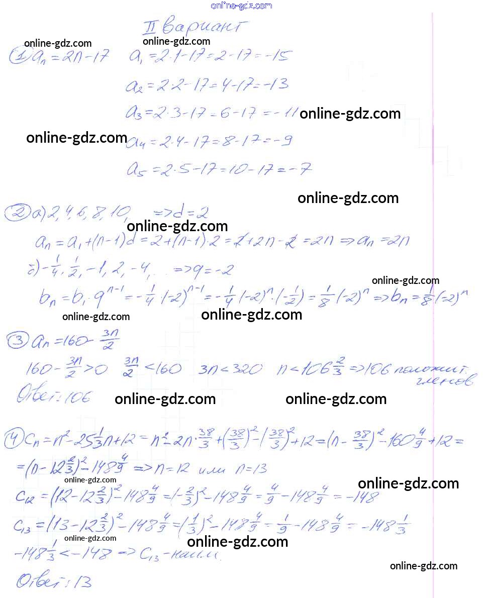 Готовые домашние задания по Алгебре за 9 класс Дидактические материалы Потапов, Шевкин МГУ - школе 2010 - СР №17. Числовые последовательности Самостоятельные работы вариант 2