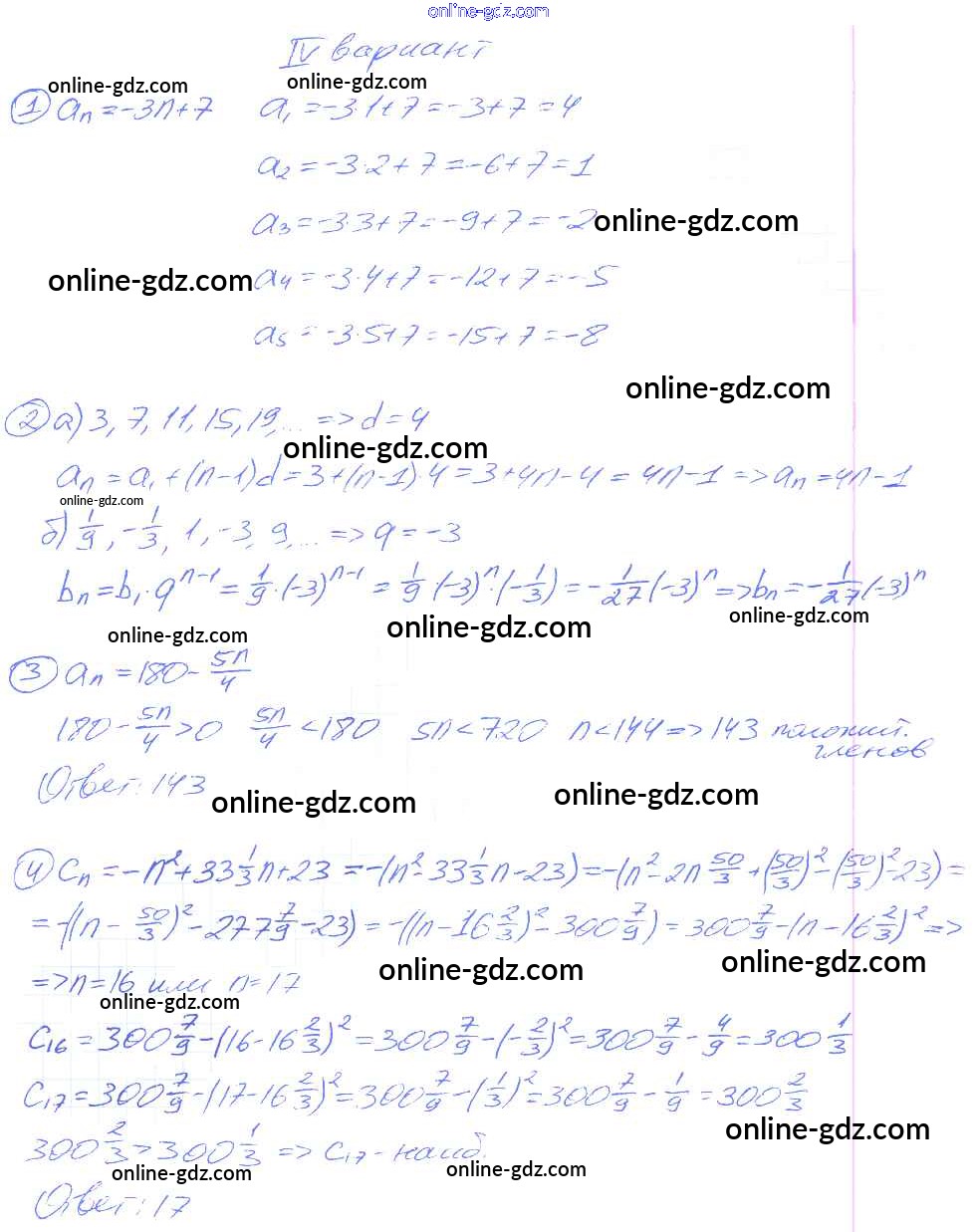 Готовые домашние задания по Алгебре за 9 класс Дидактические материалы Потапов, Шевкин МГУ - школе 2010 - СР №17. Числовые последовательности Самостоятельные работы вариант 4